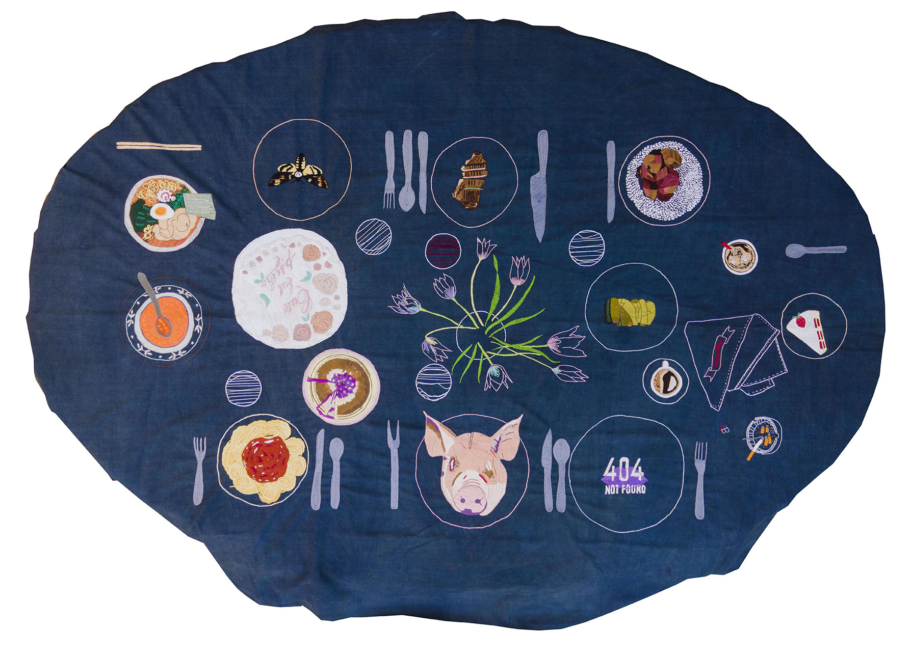 Desde 2018 empecé un proyecto que entre cruza la ausencia, lo domestico y el territorio. Este abarca otros trabajos como:  Susurros, una serie de dibujos con cabello e hilo que plantea hacer mi interpretación de joyería mortuoria, el proyecto “Poner la mesa” reúne una seria de instalaciones que entre hilan lo domestico con lo textil y Dechado de virtudes, propone una critica a los estereotipos heteronormados y hegemónicos de las violencias que pueden estar presentes en las relaciones familiares.