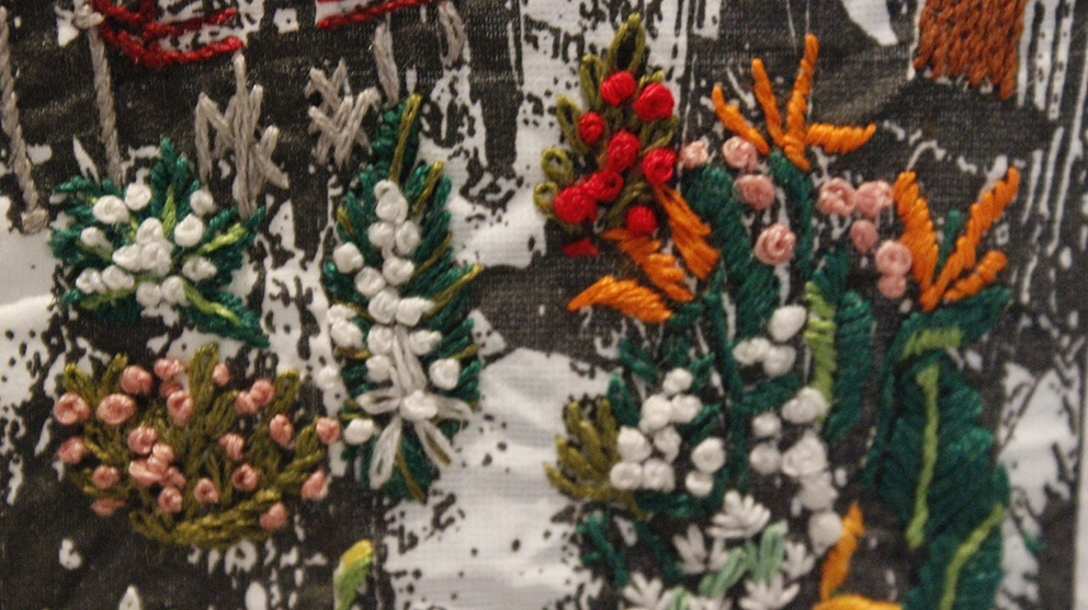 Me interesa el bordado como lenguaje y practicas discursivas sobre la memoria, para mi es una manera de reflexión. Mi obra en sus inicios, estuvo relacionada con la investigación de eventos noticiosos del narcotráfico sucedidos en México, el contenido simbólico de mi trabajo artístico esta influenciado por la tragedia personal.
